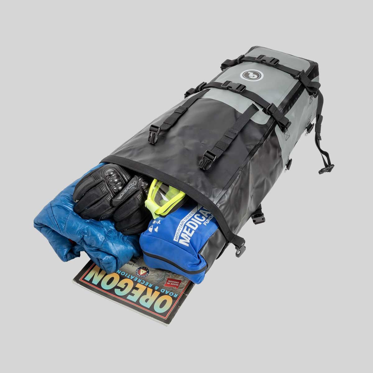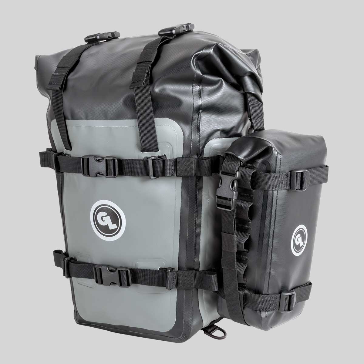 モトレックパニア(2個セット)は、ドライバッグにインスパイアされたスリムで頑丈なパニアで、1泊2日や数日間の旅行に適した大きさです。溶着した防水布を使用し、ロールトップクロージャーを備えているため、中身を濡らさず、汚さないようにすることができます。GLパニアマウントの有無にかかわらず、ほぼすべてのオートバイのサイドラゲージラックに取り付けることができ、オンロードとオフロードの両方で使用できます。