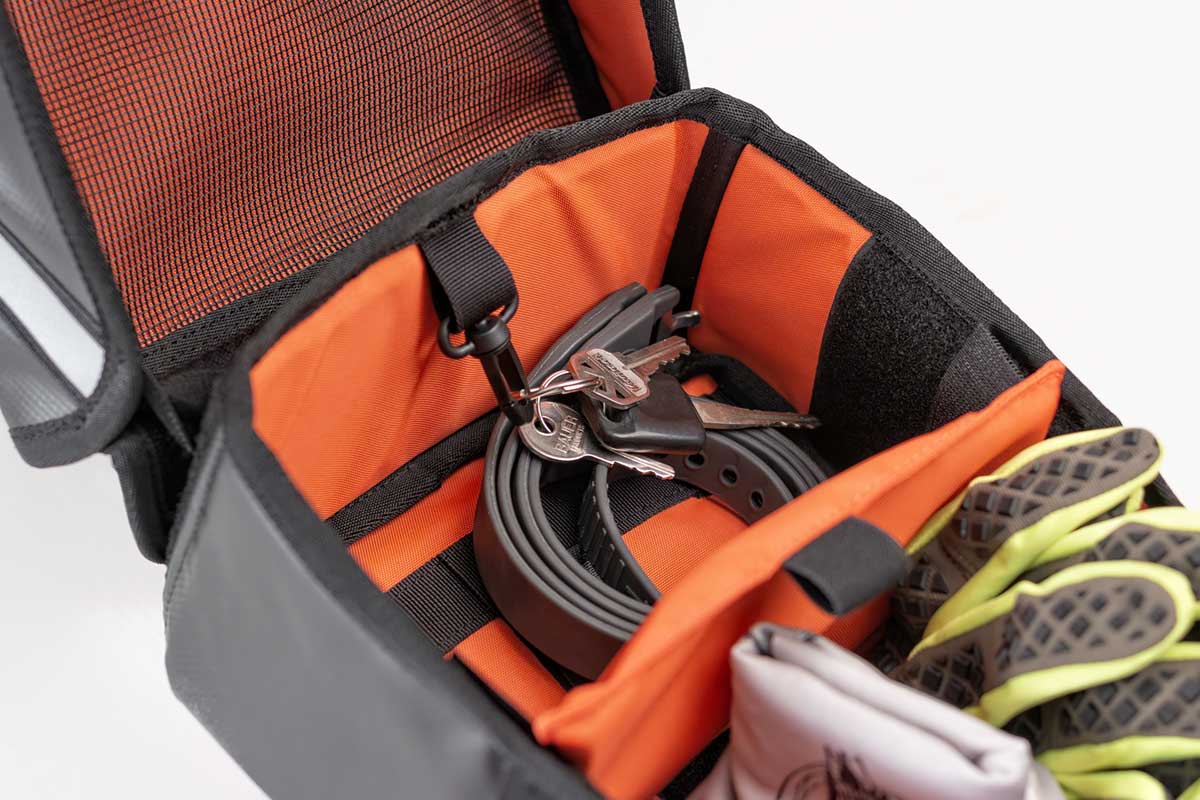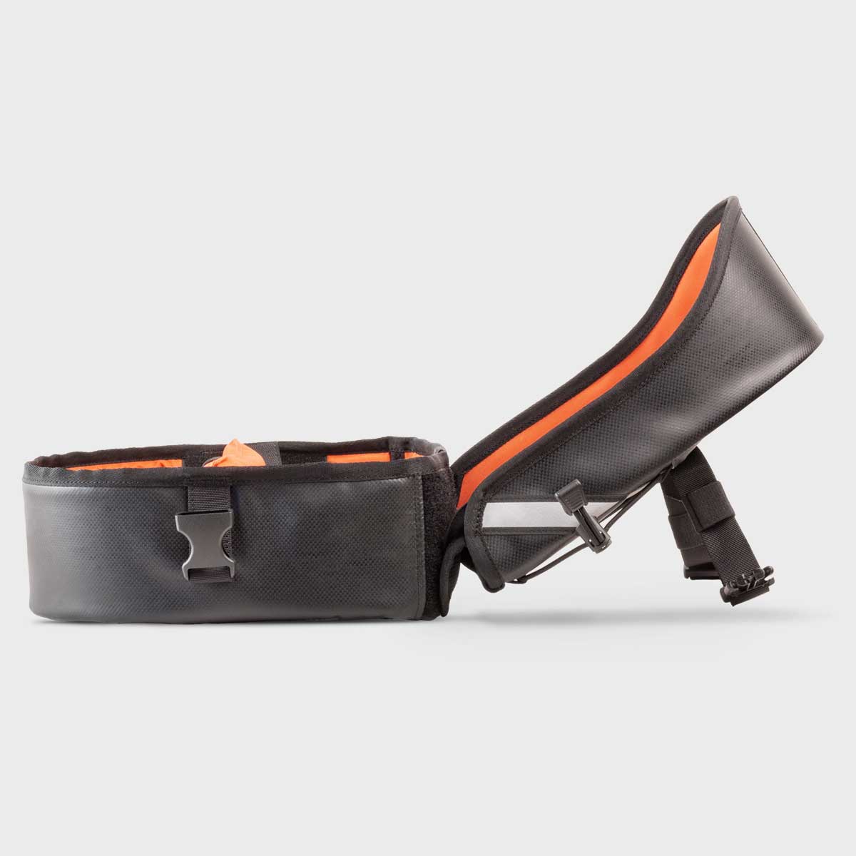 薄型のKlamath Tail Rack Packは、バイクのテールエンド用のタンクバッグのように、ギアを整理して簡単にアクセスできるようにするものです。4リットルのソフトラゲージケースは、クラシックなオートバイのラリー用パックにインスパイアされた、ジッパーなしの折り畳み式のデザインが特徴です。